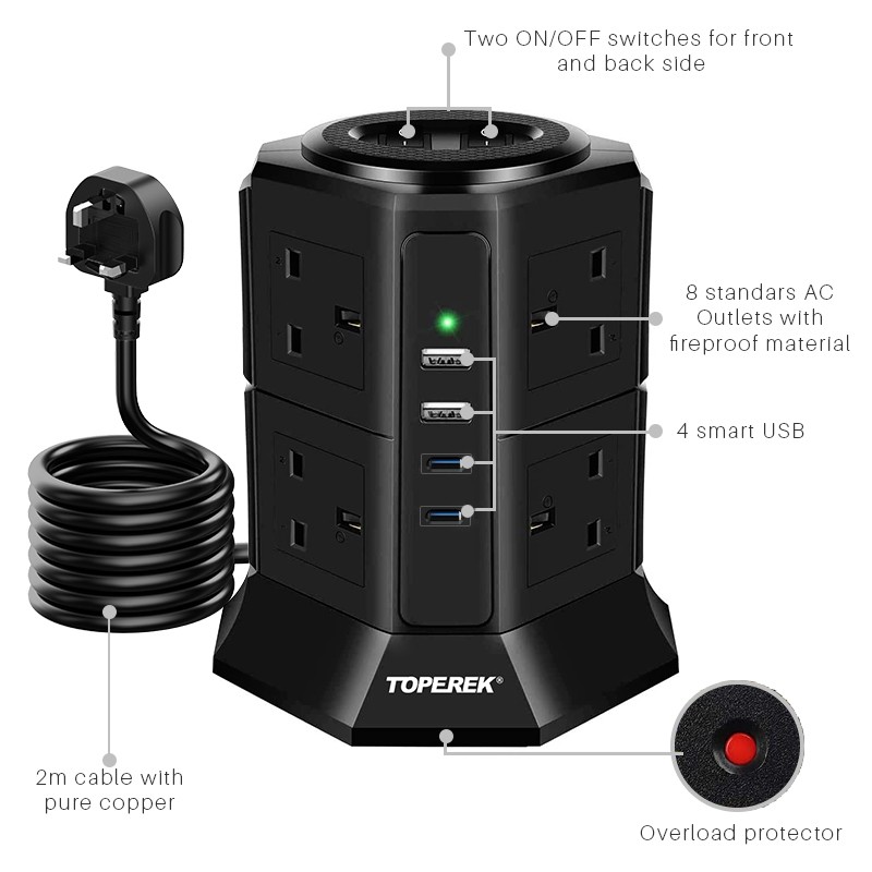 8個英國插孔 + 2個USB-A + 2個USB-C - USB輸出