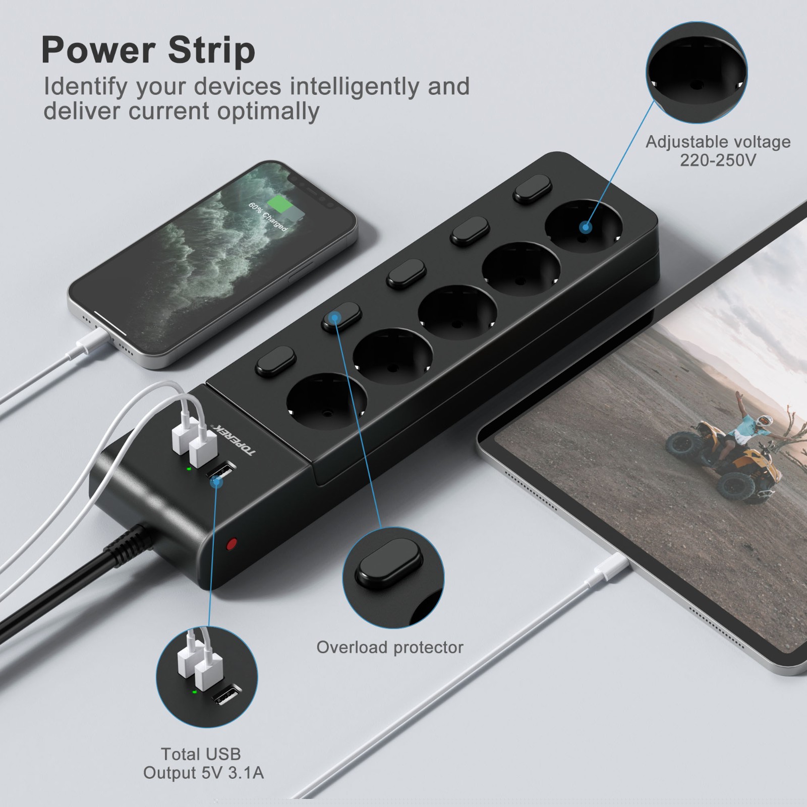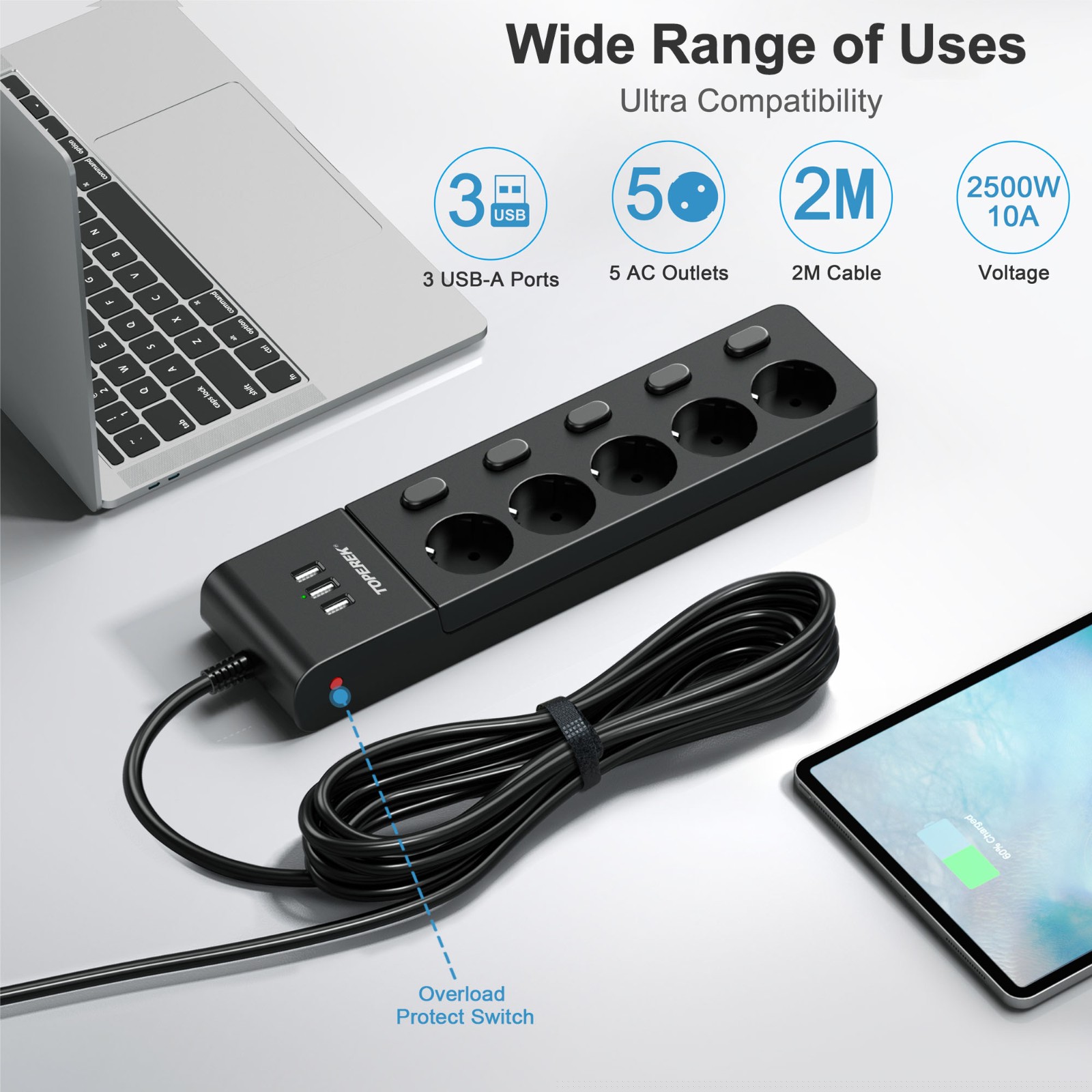 5個(gè)歐規(guī)孔 + 3個(gè)USB - USB輸出