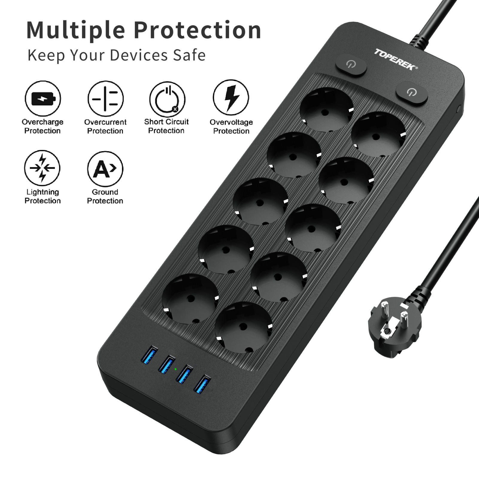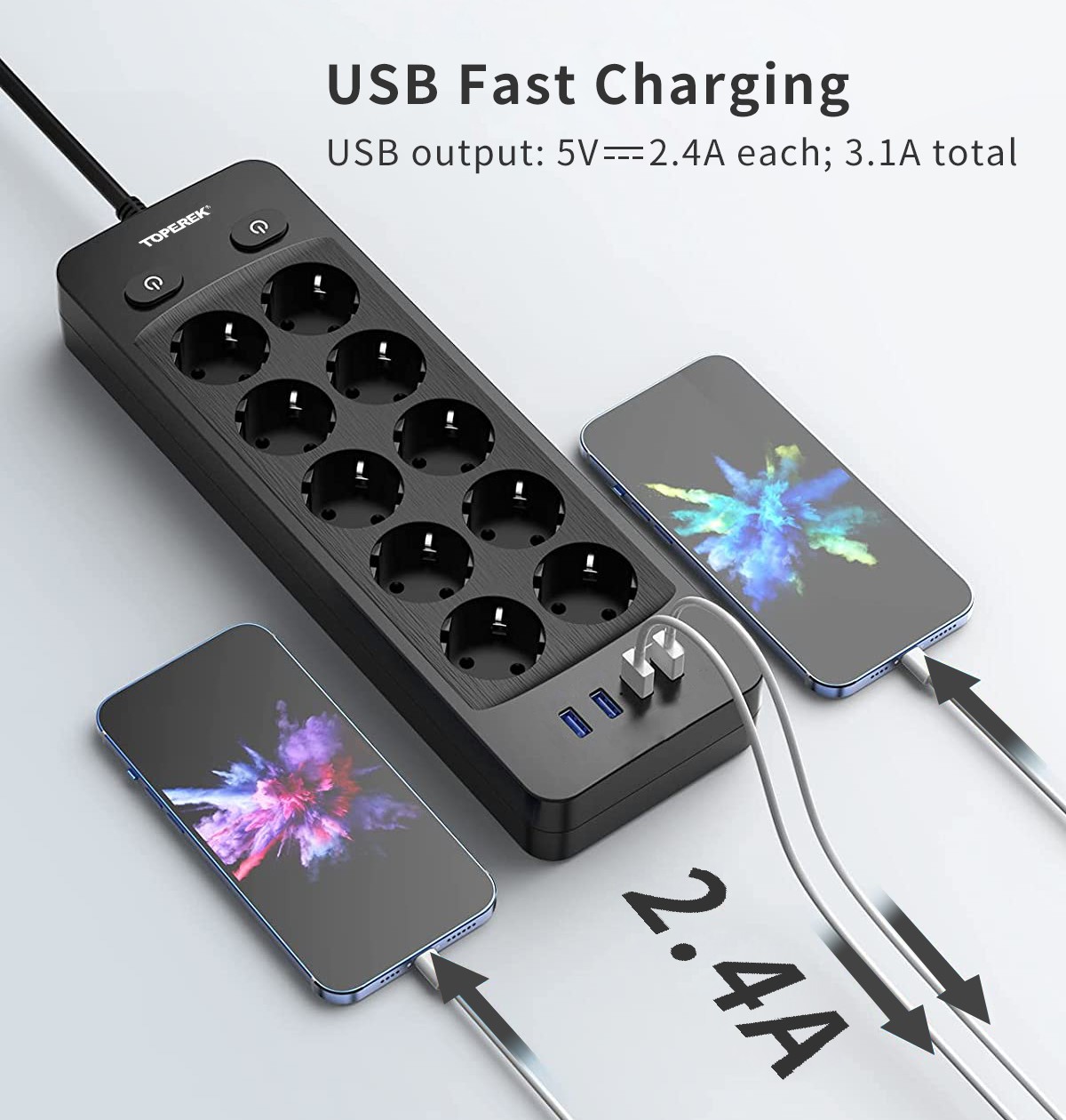 10個(gè)歐規(guī)孔 + 4個(gè)USB - USB輸出