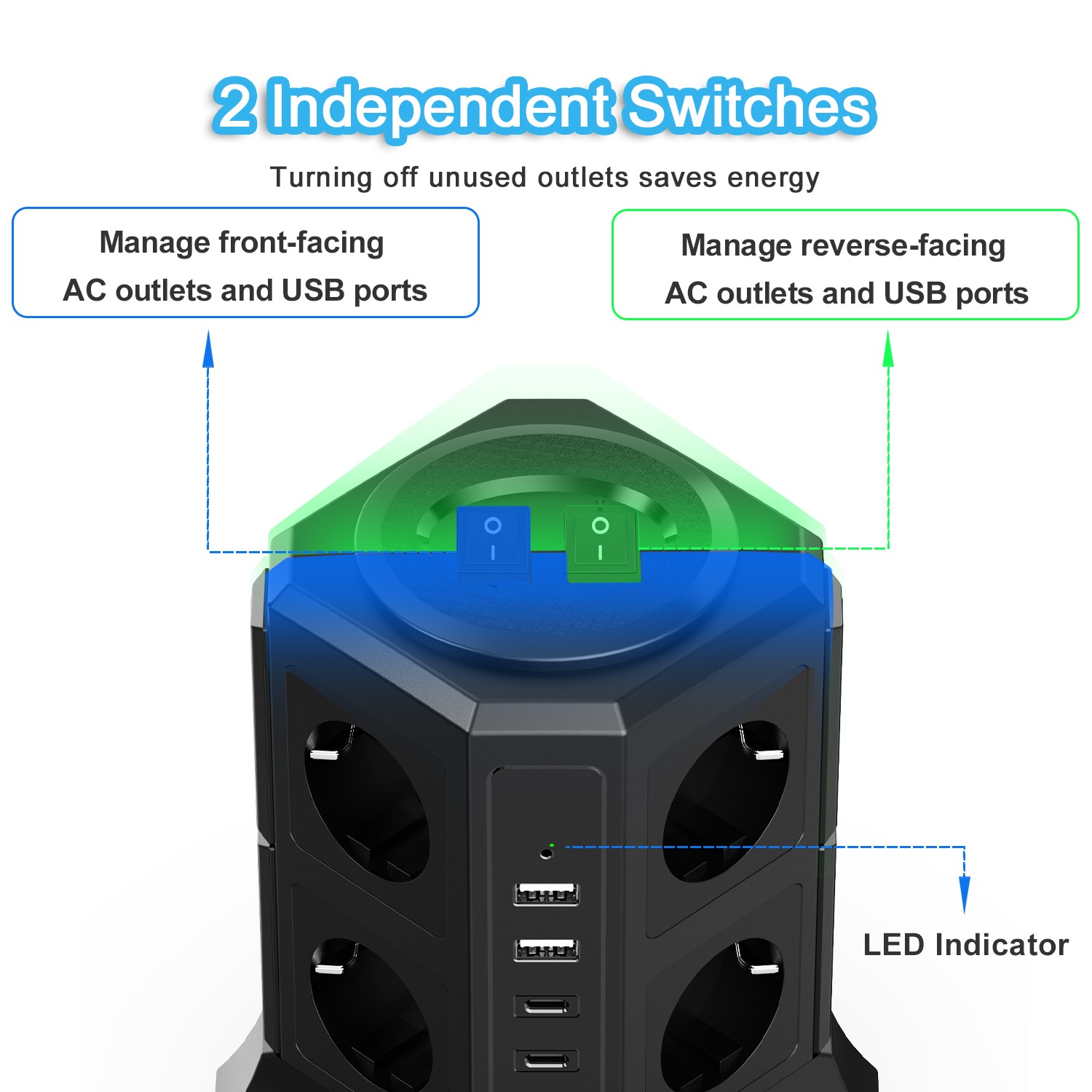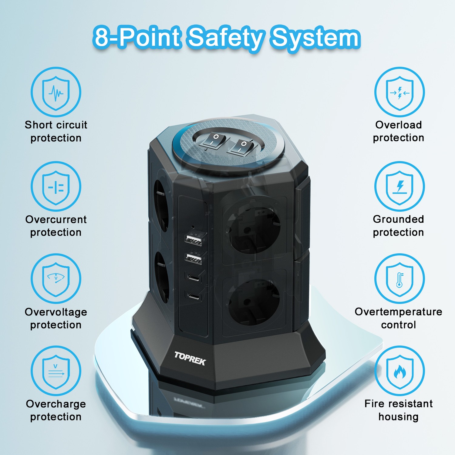 8 EU outlets with 2 USB-A + 2 USB-C - USB輸出