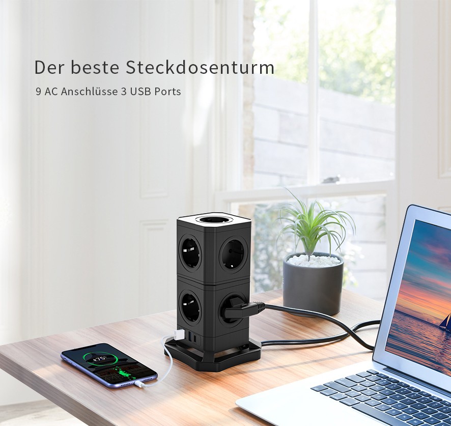 9 EU outlets with 2 USB-A 1 USB-C - USB輸出