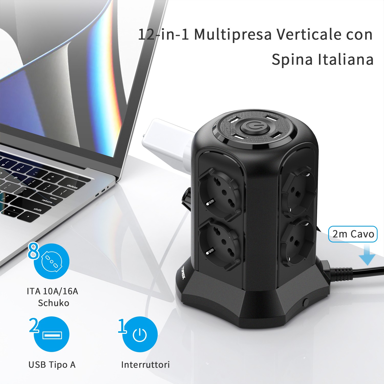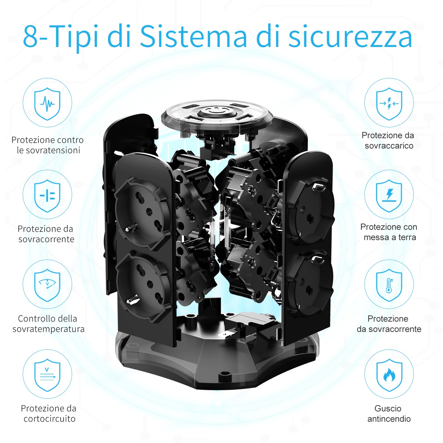 8個(gè)意大利規(guī)插孔 + 4個(gè)USB - USB輸出