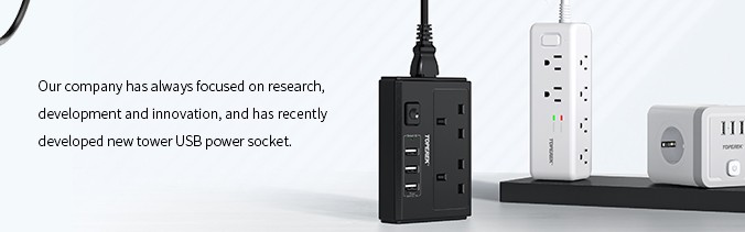 Power Extension Cord Multi Function Charger Tower Socket for Home / Office